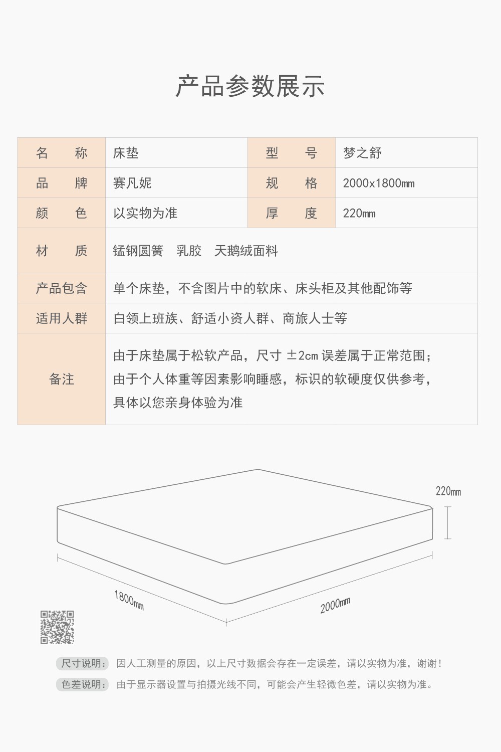规格 2000×1800×220mm 规格 2000×1800×220mm